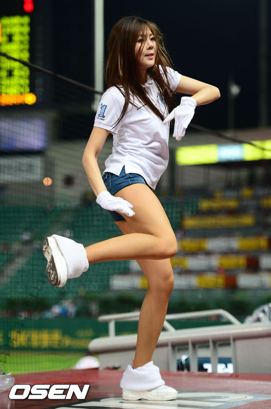 9일 오후 인천 문학구장에서 열린 '2014 한국야쿠르트 세븐 프로야구' SK 와이번스와 KIA 타이거즈의 경기, SK 치어리더가 힘찬 응원을 펼치고 있다..