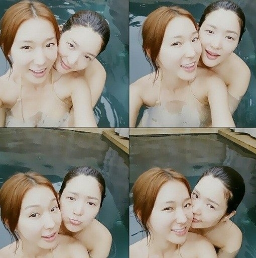 공개된 사진 속에는 수영복 차림의 두 사람이 다정하게 껴안은 채 장난기 가득한 표정을 짓고 있어 눈길을 끈다. 가수 활동 당시 두 사람의 불화로 그룹이 해체됐지만, 시간이 지나 앙금을 풀고 절친이 된 것.