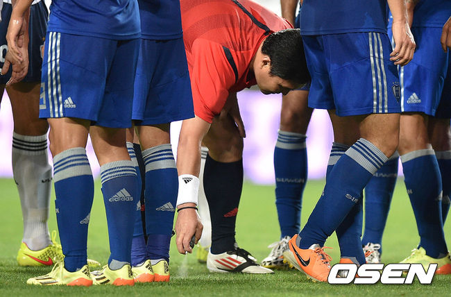 후반 울산의 프리킥때 주심이 베니싱 스프레이를 뿌리고 있다./sunday@osen.co.kr