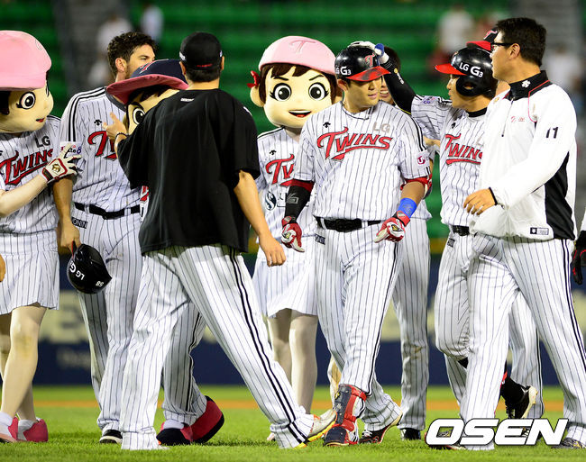 경기후 LG 끝내기 안타를 날린 정의윤이 동료선수들과 승리를 기뻐하고 있다. / jpnews@osen.co.kr