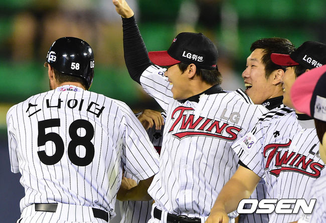 경기종료후 LG 선수들이 끝내기 승리의 기쁨을 나누고 있다./ greenfield@osen.co.kr