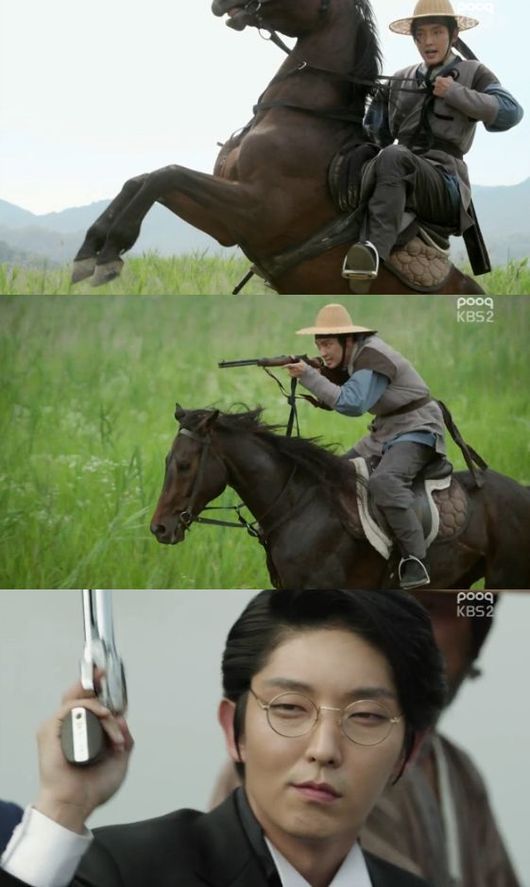9일 오후 10시 방송된 KBS 2TV '조선총잡이'에는 역적으로 몰려 총에 맞은 뒤 3년 후 조선을 밟은 박윤강(이준기 분)이 자유자재로 총을 다루는 모습이 담겼다.