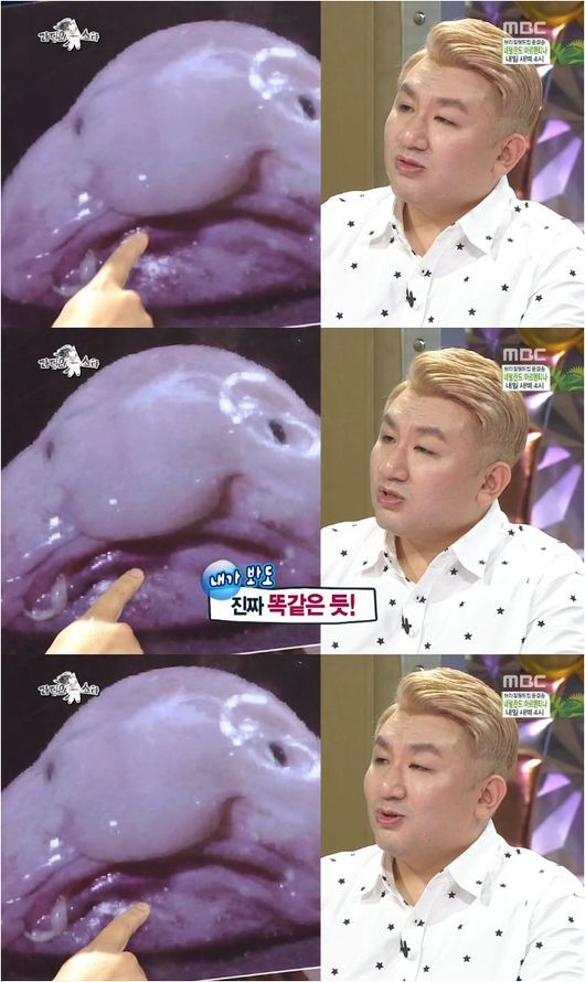 그는 9일 방송된 MBC 예능프로그램 ‘황금어장-라디오스타’에서 해양 생물 닮은꼴로 화제가 된 것에 대해 “네티즌이 올렸는데 너무 똑같더라. 심해어라더라”라고 자신과 닮은 생물을 알고 있다고 털어놨다.