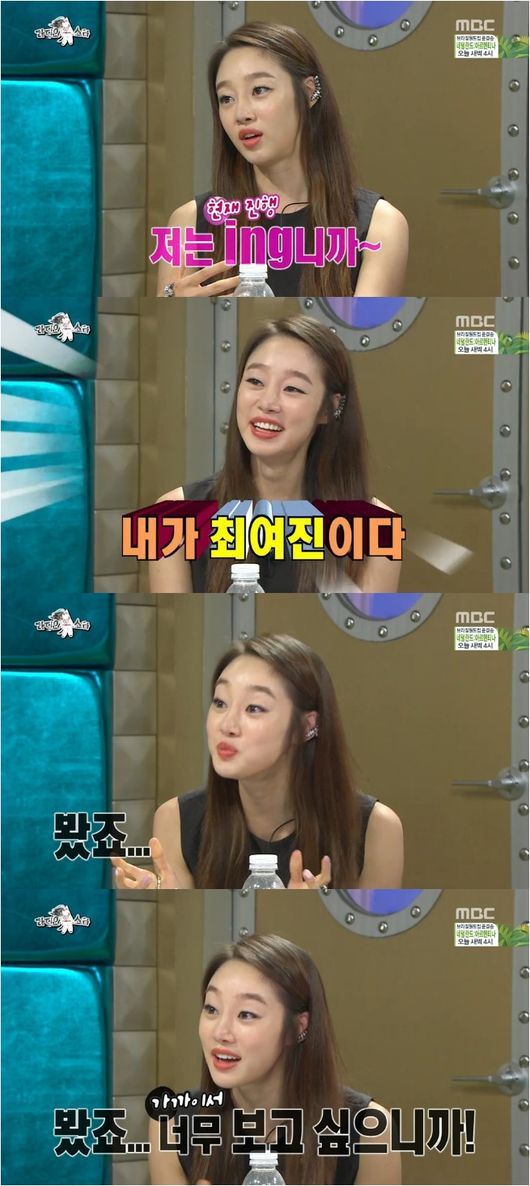 최여진은 9일 방송된 MBC 예능프로그램 ‘황금어장-라디오스타’에서 이 같이 말하며 스토킹을 한 이유에 대해 “난 (사랑이) 진행 중이었다”고 솔직하게 말했다.