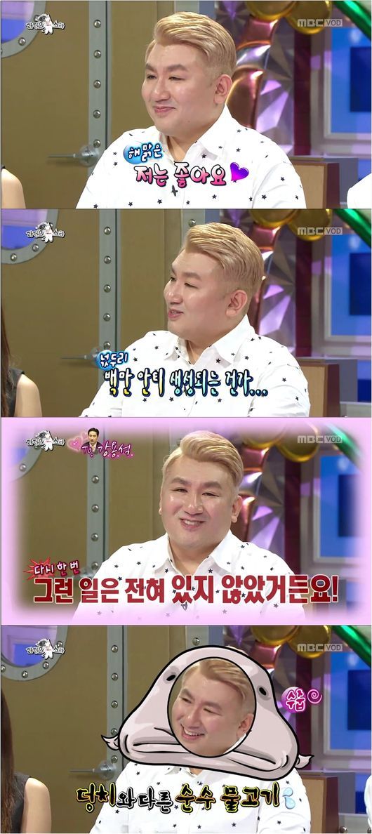 방시혁은 지난 9일 방송된 MBC 예능프로그램 ‘황금어장-라디오스타’에서 해양 생물을 닮았다는 이유로 문어 닮은꼴 이상봉, 니모 닮은꼴 최여진, 완도 김 홍보대사 샘 오취리와 함께 나왔다. 그는 자신과 닮았다고 화제가 됐던 해양생물에 대해 “너무 닮았다”고 시원하게 인정한 순간부터 모든 것을 내려놓은 듯 솔직한 속내를 털어놨다.