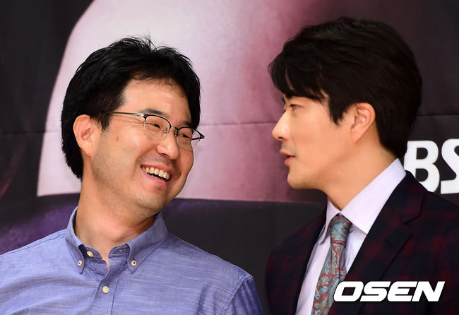 박영수 감독과 배우 권상우가 이야기를 나누며 즐거워하고 있다.