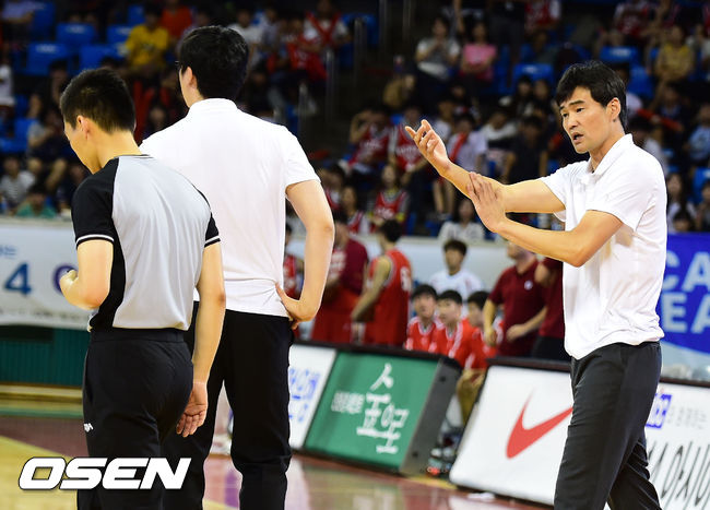 연장전 종료 2분전, 연세대 정재근 감독이 심판 판정에 항의하고 있다. /ouxou@osen.co.kr