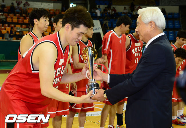경기종료 후, 우승한 고려대 이승현이 방열 대한농구협회장으로 부터 트로피를 건네 받고 있다. /ouxou@osen.co.kr