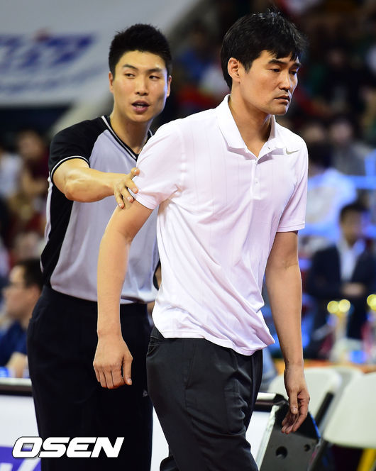 연장전 종료 2분을 남기고 초유의 사태가 발생했다. 최준용의 골밑슛을 시도하는 과정에서 이승현이 수비를 했다. 파울이라고 생각한 정재근 감독은 흥분을 참지 못하고 심판을 때리려는 제스처를 취했다. 이어 코트에 난입한 정 감독은 직접 파울을 분 다른 심판에게 다가가 그를 머리로 들이 받았다. 경기가 진행되는 와중이었다.