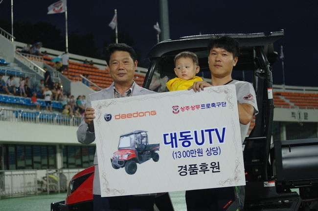 지난 9일 상주시민운동장에서 펼쳐진 부산 아이파크와의 현대오일뱅크 K리그 클래식 14라운드 하프타임 때 추첨한 대동공업UTV는 상주시민 문광남씨(35, 무양동)에게 돌아갔다.