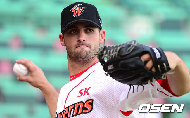 10일 오후 인천 문학구장에서 열리는 '2014 한국야쿠르트 세븐 프로야구' SK 와이번스와 KIA 타이거즈의 경기 시작전 SK 새 용병 트래비스 밴와트가 피칭 포즈를 취하고 있다.