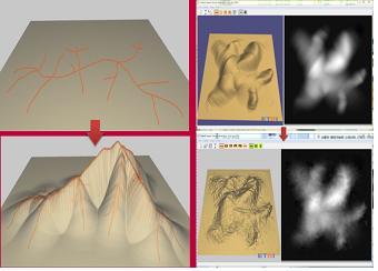 또한, 단 한 장의 사진 만으로도 3차원 나무나 숲을 만들 수 있고, 2차원 스케치만으로도 3차원 지형지물, 건축물 등 자연환경 기반의 통합 가상도시를 제작할 수 있어 제작 기간과 비용을 외산 저작기술 대비 1/2로 절감할 수 있다.