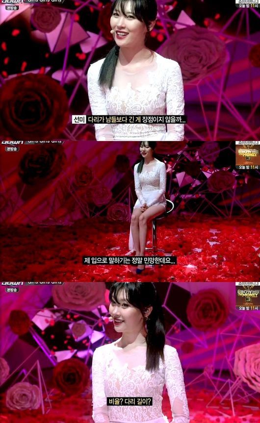 이어 선미는 "다리가 남들보다 긴 게 장점"이라며 비율과 다리 길이를 자신이 가진 섹시미의 비결로 꼽았다.