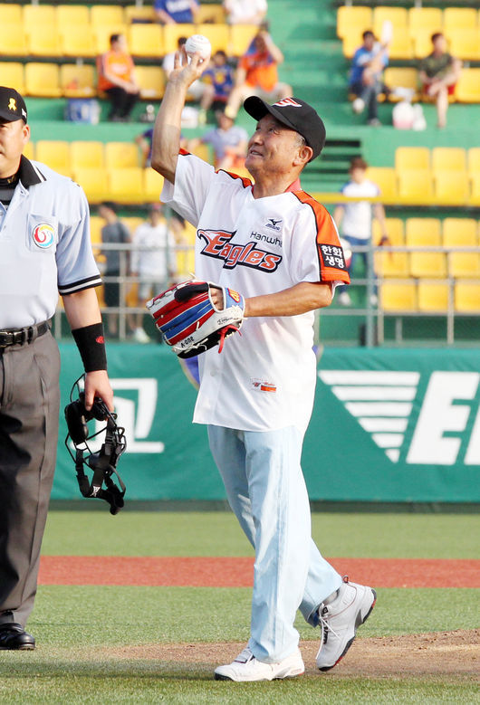 한화 이글스는 10일 청주구장에서 펼쳐지는 넥센 히어로즈와의 경기에 앞서 충청북도 최고령 다회 헌혈자인 이상일씨(67)가 시구를, 충북 혈액원에서 간호사로 근무 중인 이정화씨가 시타를 했다.