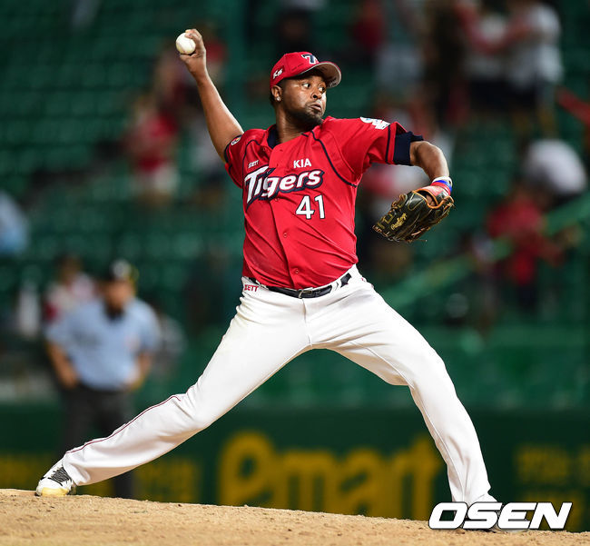 10일 오후 인천 문학구장에서 열린 '2014 한국야쿠르트 세븐 프로야구' SK 와이번스와 KIA 타이거즈의 경기 9회말 마운드에 등판한 어센시오가 역투하고 있다.