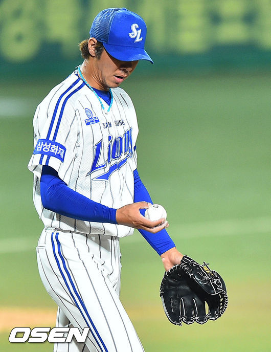 9회 역전 허용한 삼성 임창용이 공을 바라보고 있다. / soul1014@osen.co.kr
