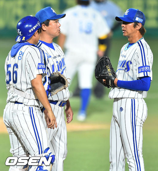 9회 삼성 임창용이 김태한 투수코치와 이야기를 나누고 있다. / soul1014@osen.co.kr