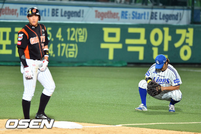 9회 송구실책을 범한 삼성 박석민이 아쉬워하고 있다. / soul1014@osen.co.kr