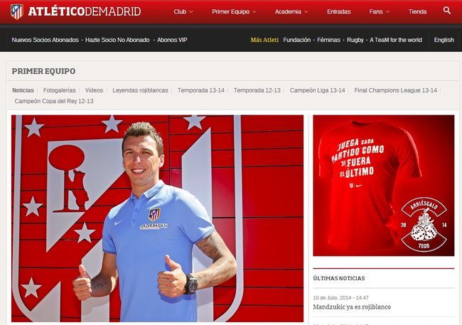 아틀레티코 마드리드 공식 홈페이지.