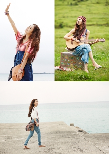 먼저 박지윤은 빨간색 스트라이프 티셔츠와 데님 오버롤에 색색의 실 팔찌를 겹겹이 매치해 사랑스러우면서도 청순한 룩을 연출했다. 여기에 가죽 크로스백과 스카프를 더해 작은 센스 하나까지도 놓치지 않았다.