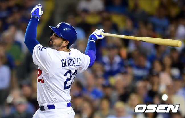 6회말 1사 3루 다저스 곤잘레스가 중견수 희생플라이로 타점을 올리고 있다./youngrae@osen.co.kr
