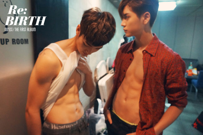 [OSEN=조민희 인턴기자] 보이그룹 뉴이스트 멤버 아론과 렌의 복근 대결 사진이 공개됐다.