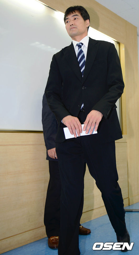 정재근 감독이 기자회견을 마친후 회견장을 나가고 있다.