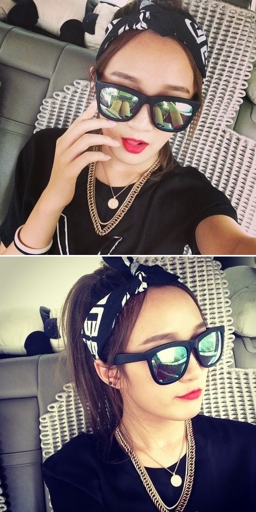 사진 속 지아는 선글라스를 낀 채 카메라를 응시하고 있다. 특히 블랙코드로 맞춘 옷과 머리띠, 선글라스와 대조적인 빨간 입술로 눈길을 끌었다.