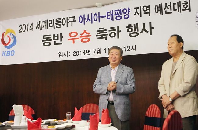 구 총재는 11일 '2014 세계리틀야구 아시아-태평양 지역예선대회'에서 우승한 13세 이하 대표팀과 12세 이하 대표팀을 초청해 식사를 함께 하고, 축하의 뜻을 담은 격려금과 선물을 전달하였다.