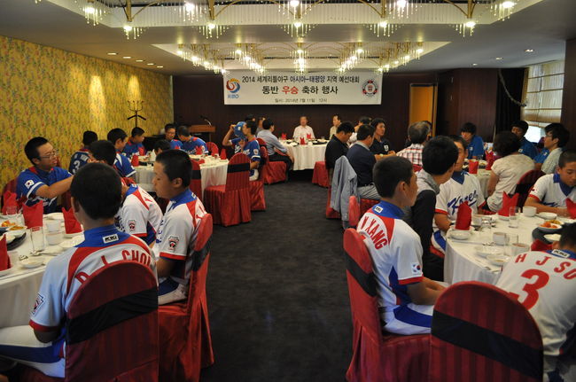 한국야구위원회(KBO) 구본능 총재가 우승을 차지한 리틀야구 국가대표팀을 초대해 축하연을 개최했다.