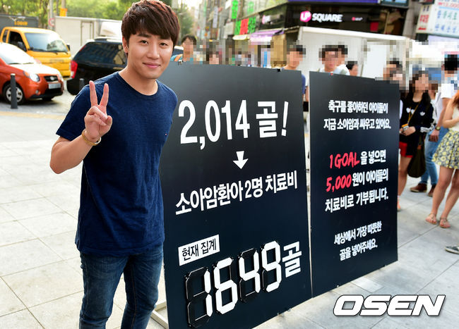 이날 행사에는 전 프로게이머 홍진호, 만화가 김풍, 프로그래머 이두희가 참석했다. '슛포러브'는 시민들이 페널티 킥을 시도하여 1골 성공 시마다 5,000원이 소아암 환아에게 기부되고 1,000골이 모이면 500만원, 소아암 환아 1명의 정기치료비에 쓰이게 된다. / jpnews@osen.co.kr