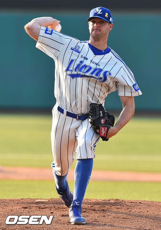 11일 오후 대구구장에서 열린 2014 한국야쿠르트 세븐 프로야구 삼성 라이온스와 SK 와이번스의 경기, 1회초 삼성 선발투수 밴덴헐크가 역투하고 있다