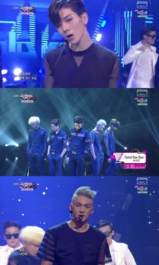 뉴이스트는 11일 오후 6시 30분 방송된 KBS 2TV '뮤직뱅크'에서 신곡 '굿 바이 바이'로 컴백했다.