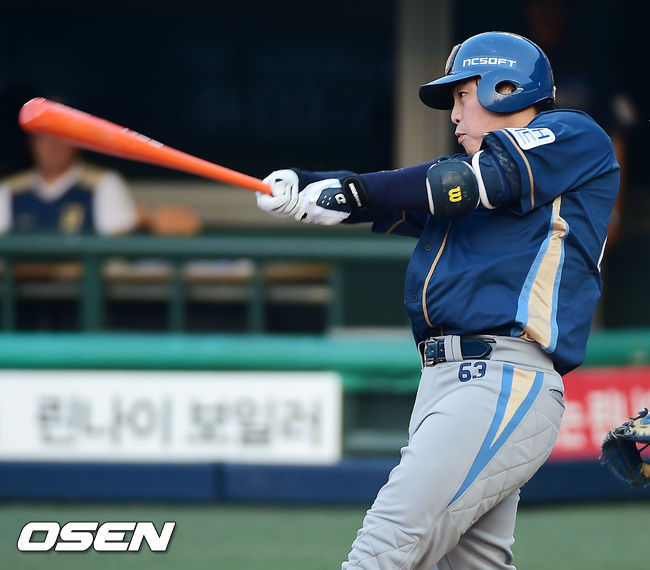 11일 오후 서울 목동야구장에서 열린 '2014 한국야쿠르트 세븐 프로야구' 넥센 히어로즈와 NC 다이노스의 경기에서, 2회초 1사 주자 만루 NC 권희동이 중견수 희생플라이로 선취 1타점을 올리고 있다.
