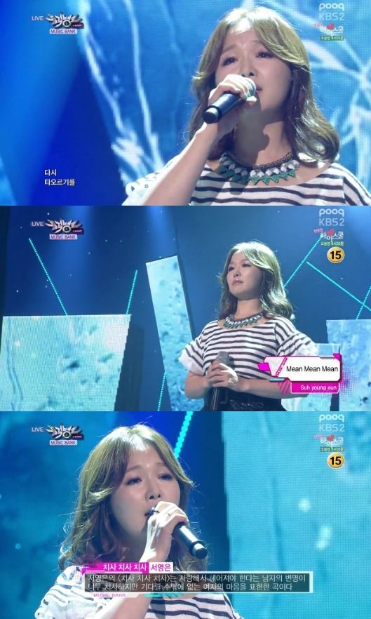 서영은은 11일 오후 6시 30분 방송된 KBS 2TV '뮤직뱅크'에서 신곡 '치사 치사 치사'로 컴백했다.