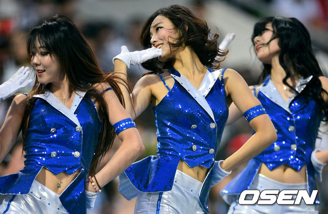 11일 오후 대구구장에서 열린 2014 한국야쿠르트 세븐 프로야구 삼성 라이온스와 SK 와이번스의 경기, 삼성 치어리더가 멋진 무대를 펼치고 있다.