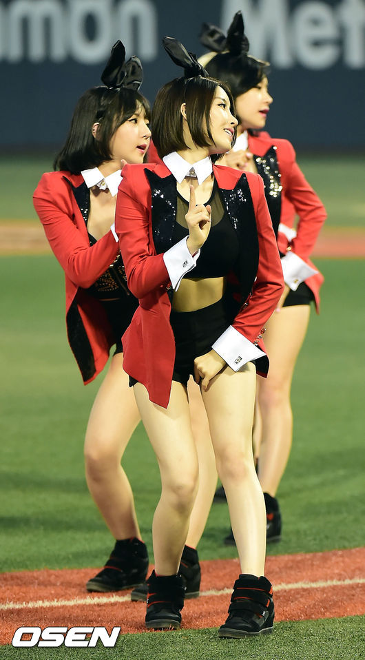 11일 오후 서울 목동야구장에서 열린 '2014 한국야쿠르트 세븐 프로야구' 넥센 히어로즈와 NC 다이노스의 경기, 클리닝 타임에 걸그룹 '단발머리'가 화려한 공연을 펼치고 있다.