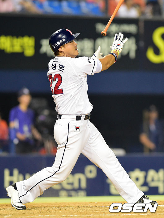 5회말 두산 공격 2사 2루 상황 홍성흔이 추격의 1타점 2루타를 날리고 있다. 역대 13호 통산 300번째 2루타.