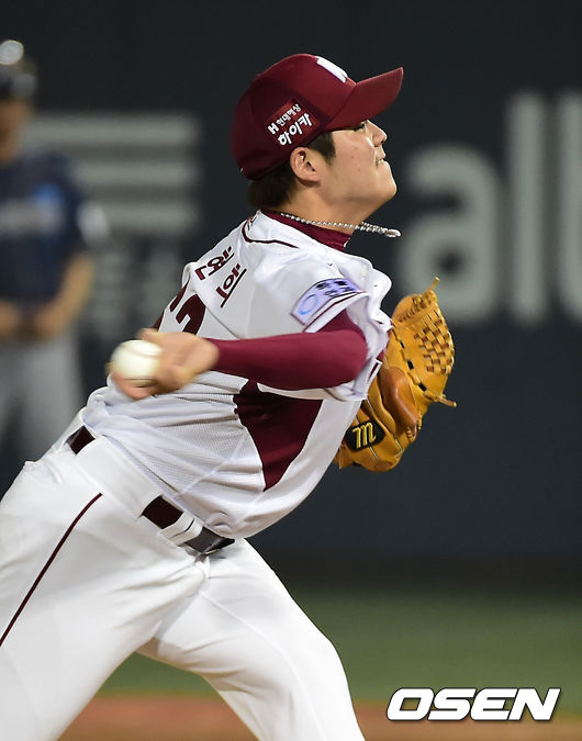11일 오후 서울 목동야구장에서 열린 '2014 한국야쿠르트 세븐 프로야구' 넥센 히어로즈와 NC 다이노스의 경기, 넥센 한현희가 힘차게 공을 뿌리고 있다.