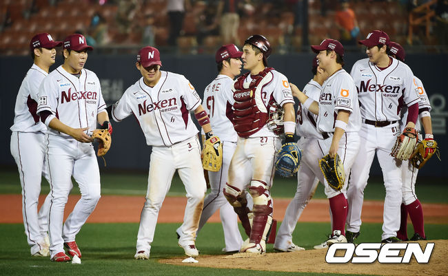 경기를 마치고 넥센 선수들이 마운드 위에서 승리의 기쁨을 나누고 있다. / rumi@osen.co.kr