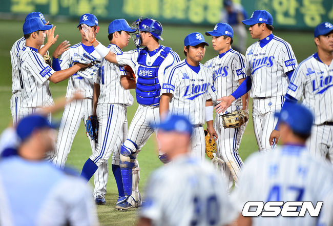 경기종료 후 삼성 선수들이 승리의 기쁨을 나누고 있다./ soul1014@osen.co.kr