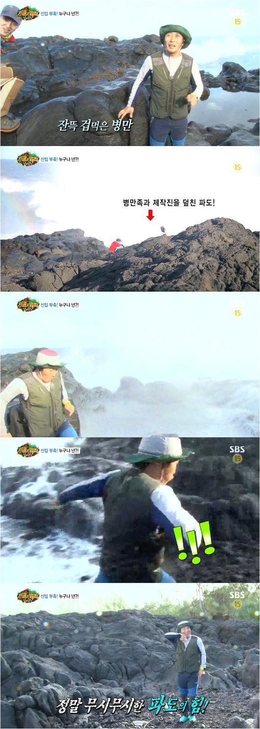 김병만이 거대한 파도의 습격에 혼비백산하고 줄행랑을 쳤다.