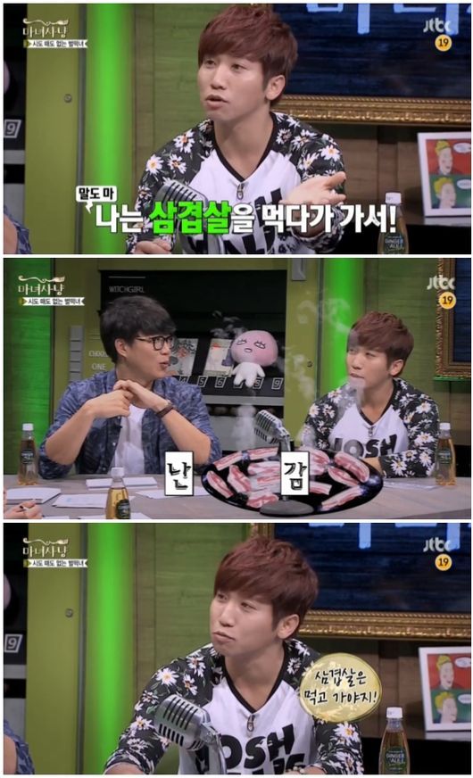 유세윤은 11일 오후 JTBC 예능프로그램 ‘마녀사냥’48회에서 “과거 삼겹살을 먹다가 여자친구가 집에 간 경험이 있다"고 말했다.