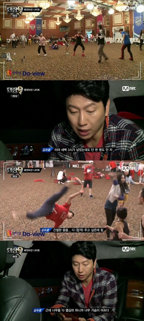 ‘댄싱9’ 김수로가 참가자들이 늦은 새벽까지 연습하는 모습에 감동했다.