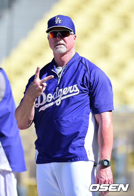 12일(한국시간) 미국 캘리포니아주 로스앤젤레스 다저스타디움에서 열리는 '2014 메이저리그' LA 다저스와 샌디에이고 파드리스와의 경기에 앞서 다저스 맥과이어 코치가 포즈를 취하고 있다.