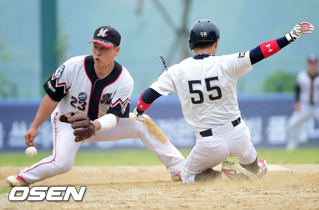 3회말 무사 주자 1루 샘 야구단 한덕동이 2루 도루에 성공하고 있다.