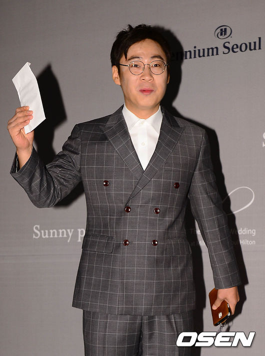12일 밀레니엄 서울 힐튼 호텔에서 배우 김현숙의 결혼식에 참석한 개그맨 장동혁이 포토타임을 갖고 있다.