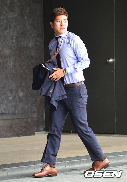 축구선수 박주호가 12일 오전 서울 장충동 신라호텔에서 열리는 '블루드래곤' 이청용 결혼식에 참석하고 있다.