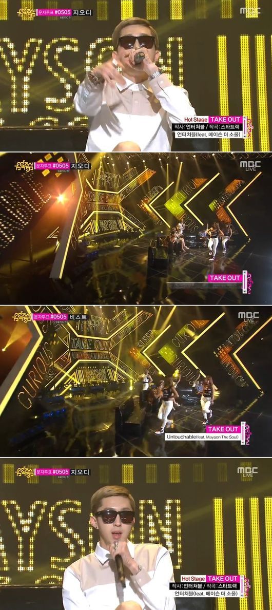 언터쳐블은 12일 오후 방송된 MBC 음악 프로그램 '쇼! 음악중심'에서 ‘테이크 아웃’을 열창하며 부드러운면서도 강력한 남성미를 발산했다.