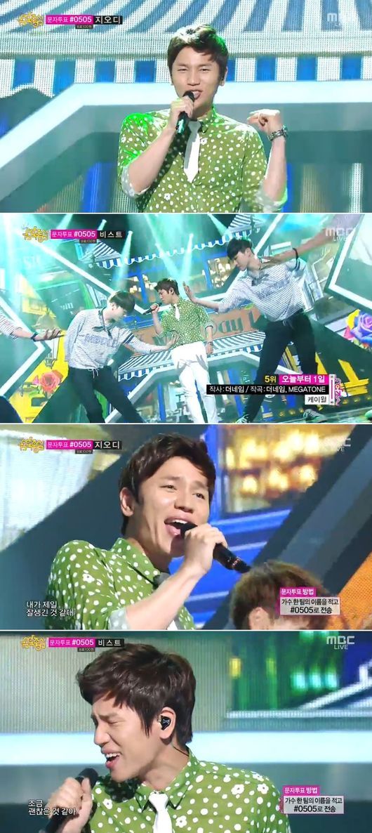 케이윌은 12일 오후 방송된 MBC 음악 프로그램 '쇼! 음악중심'에서 ‘오늘부터 1위’를 열창하며 상큼하면서도 달달한 매력을 동시에 발산했다.